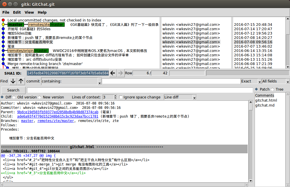 * d6efce6 增加章节: arc diff的ubuntu安装查看某个 commit 所属的 branch